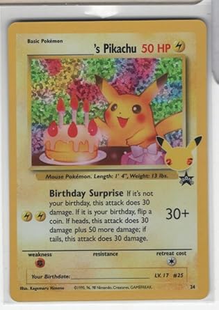 Amazon Com Pokemon 25th Celebration Happy Birthday Pikachu Holo Blackstar Promo 24 Collectibles Fine Art